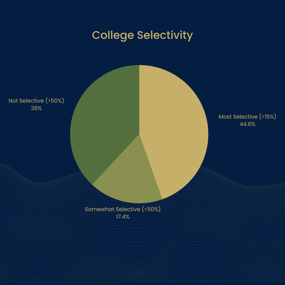 GMs come from colleges all over the spectrum. It is a commonly held belief that the path to the top is reserved for Ivy League graduates. In reality, fewer than half of GMs come from a school with an admissions rate of 15% or below. Almost 40% come from a school with an admissions rate of over 50%. It matters less where a student attends and much more what they do during their time in college.